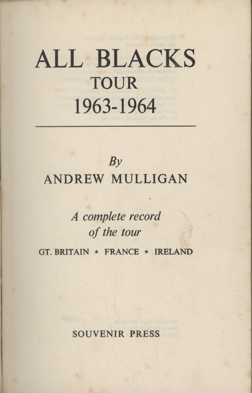 Rugby Union » Rugby Union Books » Rugby Tours & Tests » ALL BLACKS TOUR 1963-64: A COMPLETE RECORD OF THE TOUR